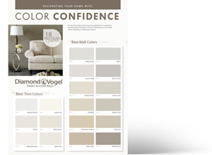 Diamond Vogel offers Color Confidence, a collection of eighteen proven neutrals that allow your walls to become a canvas to showcase your home. Whether your home looks best dressed in warm or cool shades, this collection makes it easy to pinpoint the perfect hues for ceiling, trim, and walls.